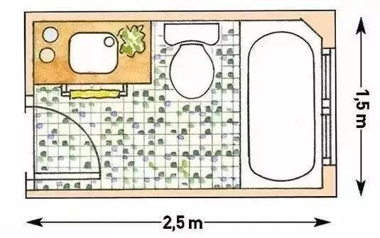 ▍如何布局:一线三点布局,适用于6-7m²长条形卫生间▼