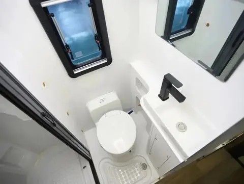 而大空间设置了干湿分离卫生间则配备了淋浴、马桶等设施,使得居住者在房车中可以享受到与家中相似的生活便利。