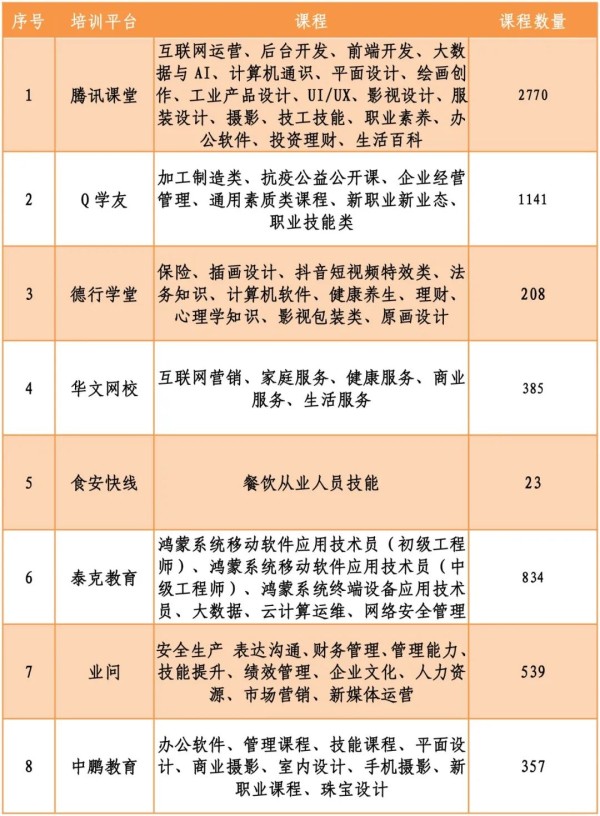 餐饮从业人员技能、办公软件课程等等