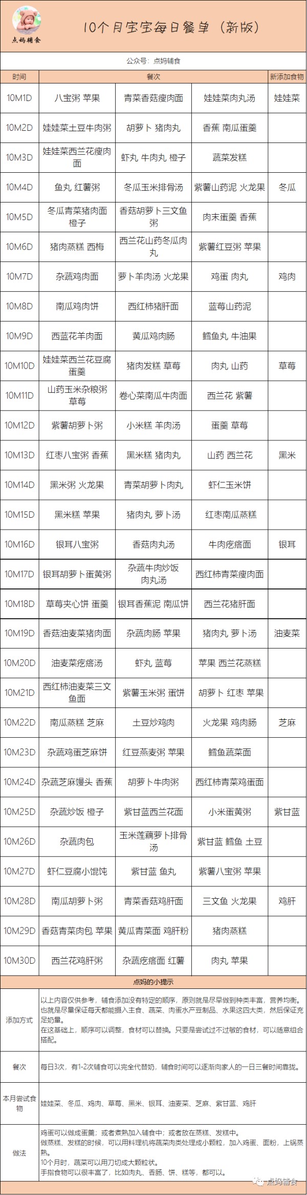10个月宝宝辅食食谱大全,附一天辅食安排表!