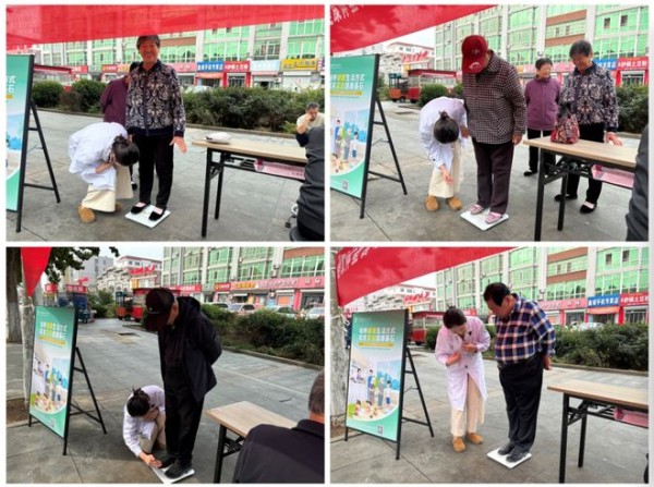 活动现场气氛热烈,通过悬挂主题横幅、设立健康咨询台等多种形式,向居民直观传递健康理念。两位医师提前布置好诊疗设备,划分出体重测量区与健康咨询区,方便居民有序参与。她们在接诊过程中反复倡导“每个人是自己健康第一责任人”的理念,引导居民主动学习健康知识,提升自我健康管理意识。