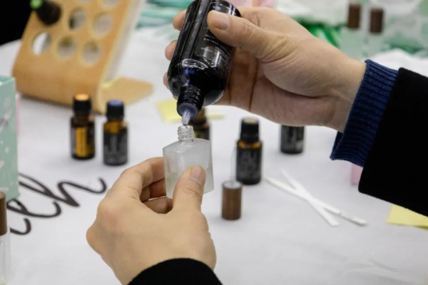 香水制作现场,整齐摆放着佛手柑、马都兰、柠檬、夏威夷檀香等数十种香型,指导老师讲解了调香的方法与技巧,并一一指导各位女干警调配自己最喜爱的香水,创造属于自己的独特惊喜。女干警们闻香、调香、试香,感受来自大自然的真味,寻觅个人的芳香密码,也将此刻的记忆、感动与期待储存在这小小的透明瓶子中。