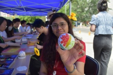 活动现场留学生参加“魔法星球”绘制活动“给自己颁个奖”活动