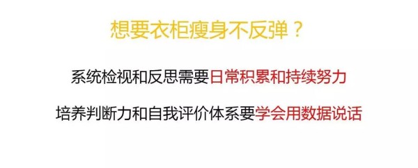 了解自己的衣服,注意日常积累和持续努力,学会用客观数据来发现那些平时不穿的衣服到底怎么了,培养判断力和自我评价体系。