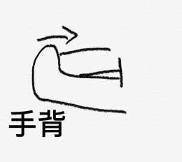 前臂-双手垂下,双手向前伸直,掌心向前,尽量指向手腕,使前手背肌肉有拉伸的感觉,然后伸直腕关节和手掌,放松肌肉。