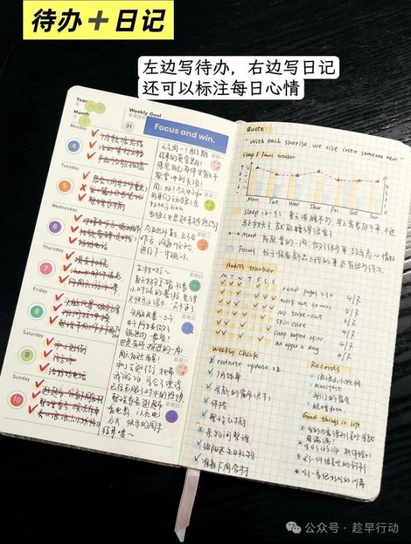 这种记录法能让你始终聚焦核心目标,避免被琐事带偏,还能通过大标题给一周定个积极的基调,让生活更有方向感。