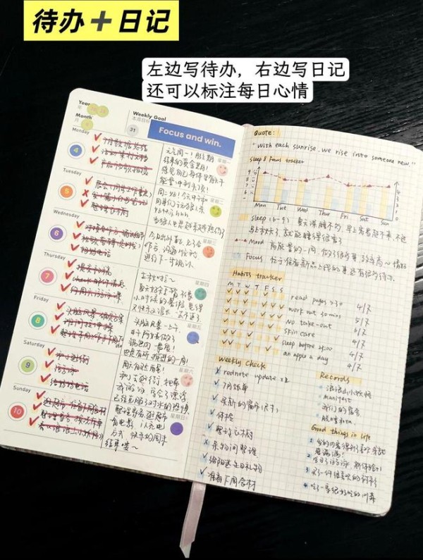可以不用长篇大论,简单记录,周末回看时,能清晰看到自己这一周的生活节奏,哪些地方做得好,哪些地方需要调整,一目了然。