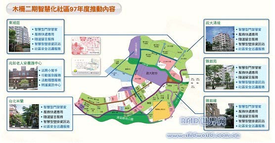 计画于台北市木栅二期重划区五个居住社区以及一所老人安养护中心建置了「智慧巡房小帮手」、「活动履历服务」、「智慧型门禁管家」、「智慧型壁挂资讯站」、以及「社区安全巡逻服务」等五项RFID建置系统,使其正式成为全亚洲第一座RFID智慧化便利社区,让社区居民能在RFID的安全网络之下,享受更优质的智慧化生活。