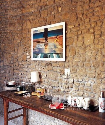 原石无处不在在一些乡村别墅中,用最原始的方法,就地取材,把天然石块用水泥砌在墙内,让墙面保持本色,这样做就好像把屋外的田园风光延伸到家中,建筑与自然浑然一体,让人享受到真正的放松。