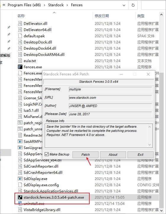1、在本站下载解压,得到fences4中文源文件和破解补丁;