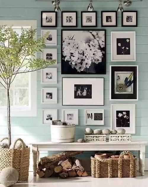 不要忽视相框的装饰作用,相框内可以有很丰富的装载物,镜面、摄影作品、绘画、纸雕、绣品等等,再根据周边环境配合不同的尺寸和挂法,空间即刻美感指数大涨。