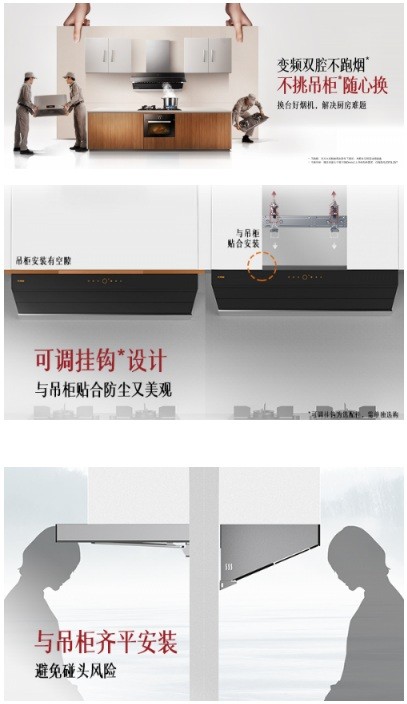 可调挂钩,设计,与橱柜完美契合;700mm,800mm,900mm,多尺寸供选择;宽度同橱柜标准宽度,美观不碰头。轻松便捷换,享受最新创新科技的厨电产品。