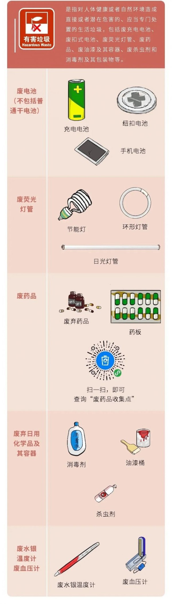 投放日光灯管、水银温度计时请小心轻放,避免打破后其中有害物质泄漏,如已打碎,请用纸张包裹好后,作为“其他垃圾”投放;