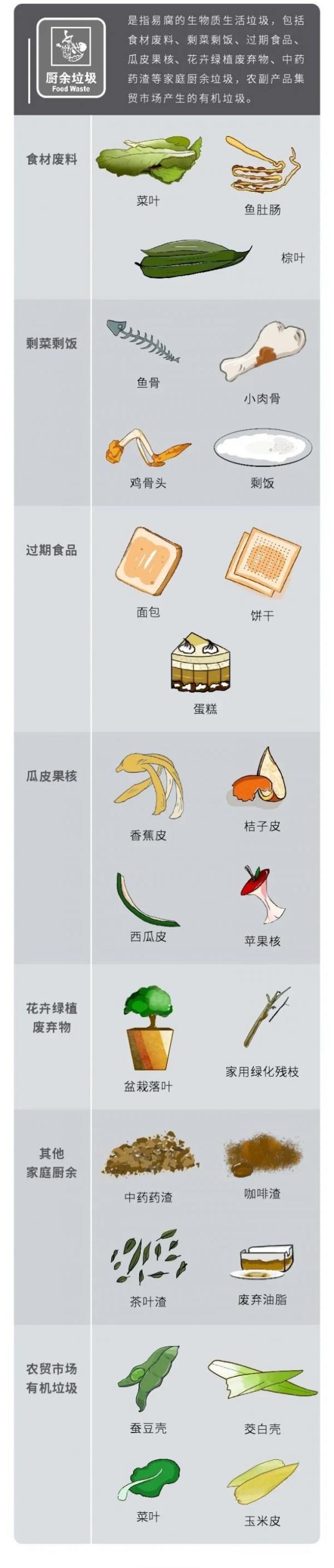 是指易腐的生物质生活垃圾,包括食材废料、剩菜剩饭、过期食品、瓜皮果核、花卉绿植废弃物、中药药渣等家庭厨余垃圾,农副产品集贸市场产生的有机垃圾。