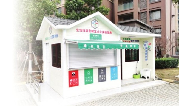 枫桥街道的富康新村建造于上世纪90年代初,共有22幢、628户住户。去年12月23日,富康新区生活垃圾定时定点投放正式运行,新建2处清洁屋,将原本分布在小区内的90个垃圾桶撤并。清洁屋配备了除臭设备、称重系统、洗手池、烘手机等设施,实施生活垃圾四分类。集中投放时间分别在上午6:00至9:00、下午6:00至9:00,并聘用了6名分类督导员,对居民进行分类督导。