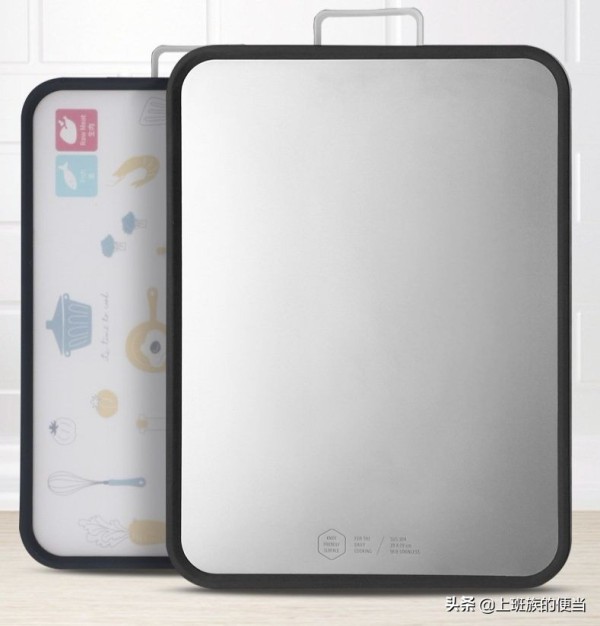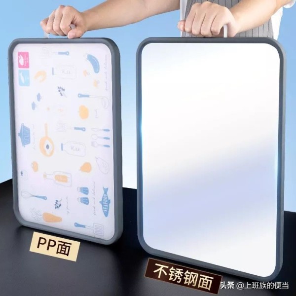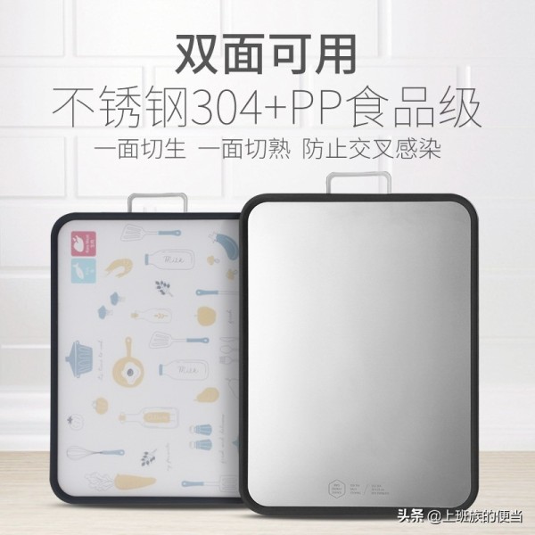 所以它的特别之处是一块砧板采用了双面材质设计,分别为PP食品级材质和不锈钢304。