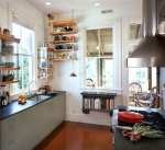 搁架设计常常出现在厨房中,用于收纳各种碗碟或是调料,但空间远远不够用,那就不要吝啬搁架的使用,将较高或者较矮的墙壁处增添几排搁架,并不会觉得厨房拥挤。