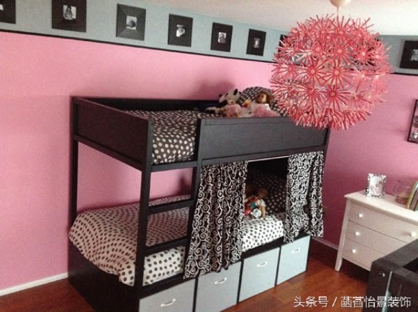 依偎会所,这张照片背后发现一个大拉杆完全适合女儿的下铺。
