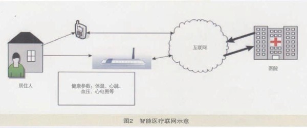 智能医疗系统借助简易实用的家庭医疗传感设备,对家中病人或老人的生理指标进行自测,并将生成的生理指标数据通过运营商的固定网络或3G无线网络传送给护理人员或有关医疗单位,如图2所示。另外,根据客户需求,运营商还可以提供相关增值业务,如紧急呼叫救助服务、专家咨询服务、终生健康档案管理服务等。智能医疗系统解决了现代社会子女因工作忙碌无暇照顾家中老人的无奈,可以随时表达孝子情怀。