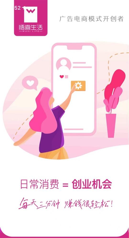 悟喜生活用户刘女士(化名)在个人公众号转发的悟喜生活海报中介绍,悟喜网络科技公司是一家联动消费者消费力量,打造消费者集群化共识的创新型科技企业。旗下“悟喜生活”广告电商平台,致力于应用互联网技术重构传统商业逻辑,打破垄断,以广告电商为流量入口,赋能线下本地生活服务企业的互联网平台。在悟喜生活买产品可以赠送积分,积分累计看广告可以领收益。