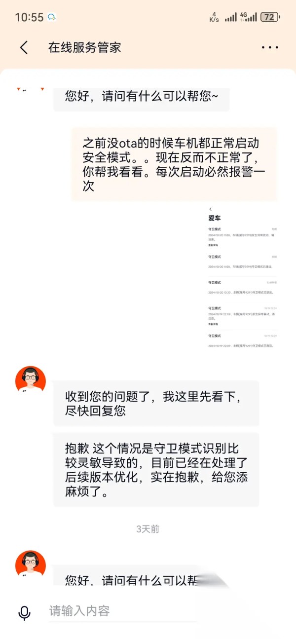 条件:左前门打开 且前置已满足:主驾驶乘坐未就座,续航里程大于150km 触发:守卫模式开启 生效时间:每天,00:00-23:59测试了这么多天,这个场景的守卫模式确实能开启。但是守卫模式本身存在一些BUG,一般这条口令会遇到开启后立即有一条振动报警的BUG。手机开启有可能遇到摄像头故障等其他的Bug。服务管家给到是说后期OTA会解决。反正该口令正常能开启,凑合着用吧!