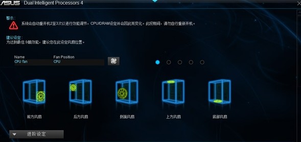 1、我们只需点击AI Suite III优化软件主界面上的4-Way Optimization(即:四重优化)按钮,系统就可以针对目前系统使用量负载进行自动调整,整个调整过程需要主机重启几次即可完成。