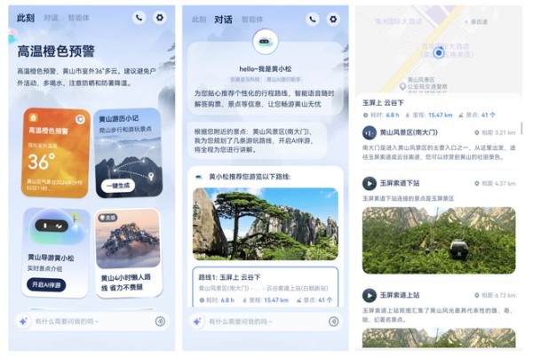 如今年9月,安徽的黄山风景区宣布携手支付宝,打造国内首个“全程AI伴游”景区。当外地游客抵达黄山后,打开“支小宝”就能快速进入黄山空间智能体——通过AOI(Area of Interest)技术,它能根据用户的实时位置介绍当前景点,图文并茂地导航或示范怎么拍打卡照;此外,它还能提供攻略推荐、快速购票、查询附近餐馆及充电宝等服务。