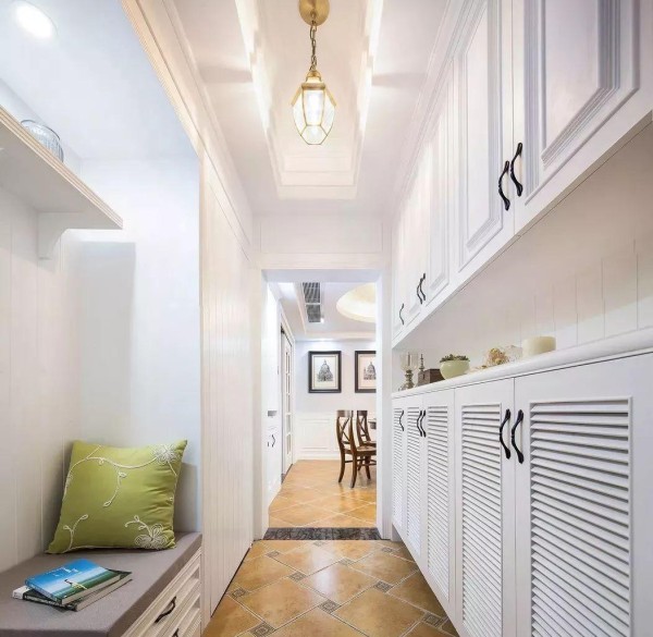 16、玄关如果太窄,那么比较适合安装平时式窄柜,尽量不要过多占用通道空间。