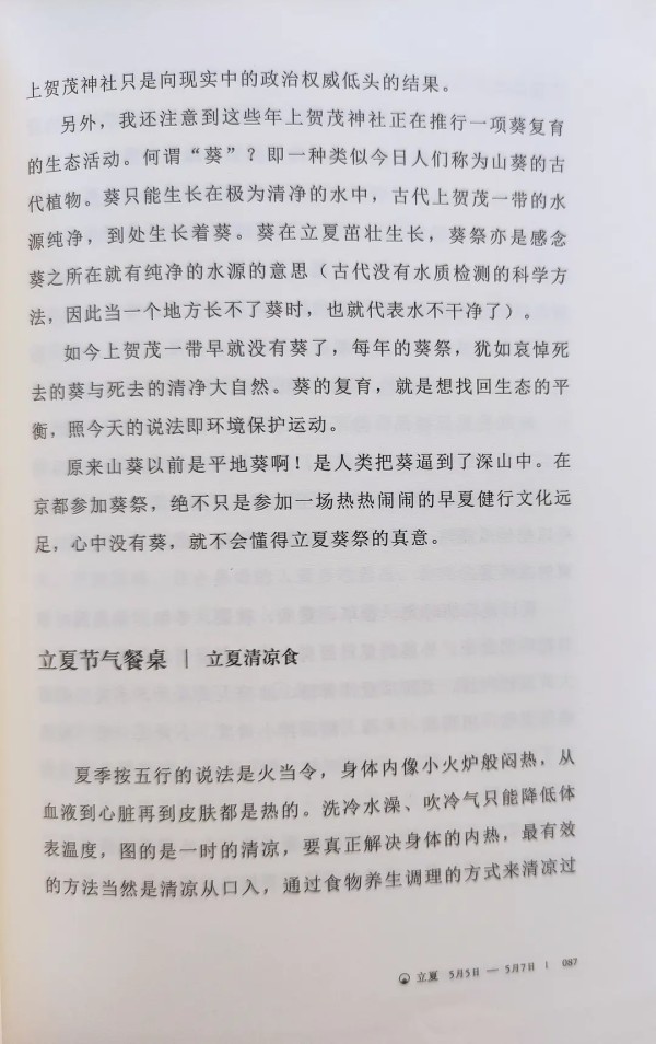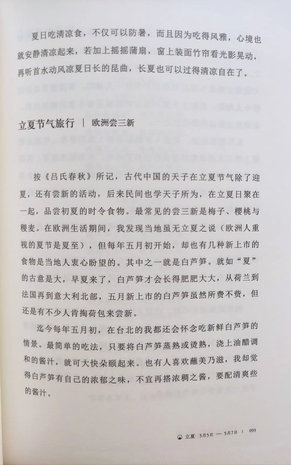 《二十四节气生活美学》是一本生活美学指南,它将古老的文明、传统、习俗化用于日常生活中、与家人朋友相处的细节中,让我们在人间烟火中感受中式美学的浪漫。 本书的作者韩良露,既是荣获过台北文学奖的著名作家,也是一位丰厚多元的生活家。这本《二十四节气生活美学》,聚集了其研究华夏节气历法数十年的知识热情,更融合了她丰厚的人生经历。与其说书是写出来的,不如说是生活出来的。 二十四节气被誉为“中国的第五大发明”,列入联合国教科文组织人类非物质文化遗产代表作名录。作者凭借其丰富的知识储备,从天文到地理,从诗词到论语,从时令到食物,从民俗到旅行,全方位地为我们揭示了二十四节气的知识体系,让我们感受到了整套华夏文化和生活的密码。 书中不仅讲述了古老的知识,更是一本“生活”出来的美学指南。从立春时节的红纸贴春联,到清明时节的雨前龙井;从立夏时分用丝瓜皮煮水,到冬日小雪时外婆煮的热茶,作者用细腻的笔触描绘出二十四节气中的生活细节,让我们在自然变迁中感受到人情的温暖。 阅读本书使我明白了:顺应天地时令的节奏,过好每一个普通的日子,也是一种智慧。读完本书,我仿佛跟随韩良露老师走过了四季的轮回,感受到了祖先的节气智慧。 另外,本书还随书附赠了24张精美“节气卡”、一张典雅古朴的节气插画,三五行关于时令节俗的介绍,并配有当日适宜的活动建议,可做书签随身携带,真是一份贴心之礼。 总之,《二十四节气生活美学》是一部值得细细品味的佳作。它让我们在快节奏的生活中,找到了回归自然的美好。如果你也想探寻华夏文明的韵味,感受生活的仪式感,那么本书绝对不容错过!