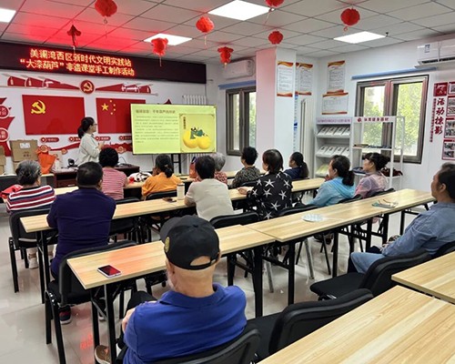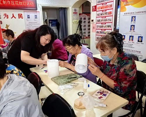 活动特别邀请了经验丰富的手工艺术讲师现场指导。从花草选材、构图设计到粘贴制作,讲师都进行了耐心细致的讲解。居民们兴致盎然,自由挑选心仪的干花,在台灯灯罩上精心布局,将大自然的美丽定格成永恒的光影。当一盏盏独一无二的压花台灯点亮时,现场洋溢着满满的成就感与幸福感。