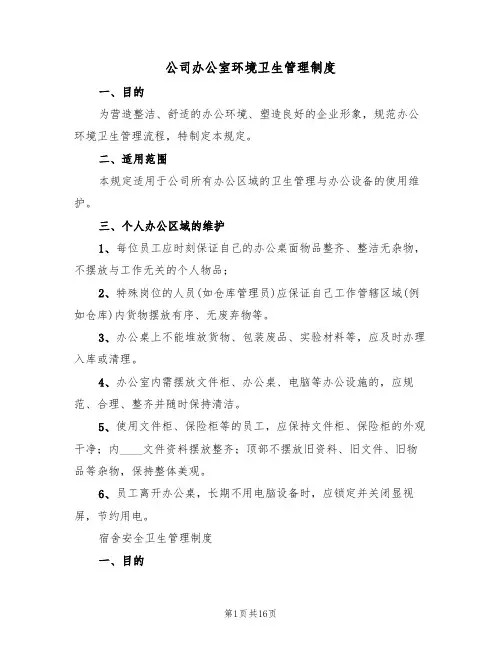 2. 目的本制度的目的是确保公司办公环境的质量,保障员工的身体健康和工作效率。