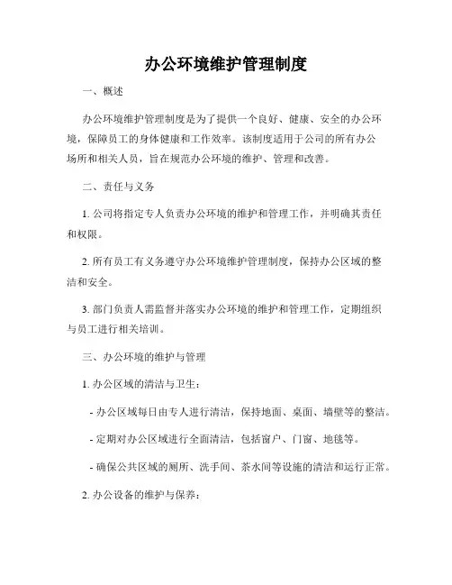 办公环境维护管理制度办公环境维护管理制度.docx