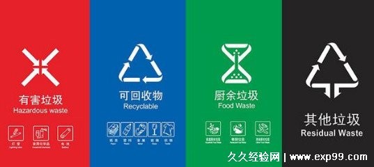 垃圾桶分类颜色和标志图片,4种不同颜色垃圾桶分别对应不同垃圾 — 久久经验网