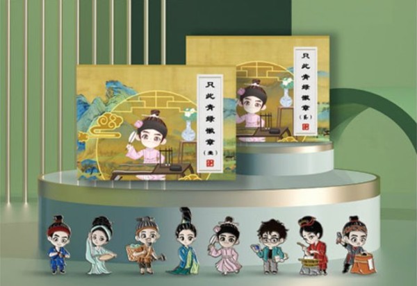 与此同时,艺术市集、演艺、非遗展示、主题邮局等新元素与新玩法融入其中,满足观众多元化的需求,为观众带来更丰富、更精彩的体验。取材于北宋王希孟创作的名画《千里江山图》的“只此青绿”舞蹈诗剧也在好评中启动了特色文创产品的设计,自2022年首演以来,其文创产品销售已突破10万件,销售额超700万元。中国东方演艺集团文创产品设计师孟昭然开发了包括单肩包、冰箱贴、手机支架、钥匙扣、徽章、台历等30余种品类的“青绿”文创产品,将文化与创意融入日常之物。她表示:“在纪念性质较强的冰箱贴系列中,不仅要关注视觉元素,更要考虑互动因素如何唤起观众的回忆。以‘青绿滑动冰箱贴’为例,我将青绿人物的形象融入《千里江山图》。滑动的过程象征着‘入画’的体验,最终青绿人物的服饰色彩与远山完美融合。‘夜光冰箱贴’则结合了剧目中的灯光效果,明亮处呈现蓝色,暗处则显示十位角色的剪影与发光的绿色背景,形成独特的‘青绿’色彩转变。此外,主题单肩包也是不可或缺的单品。许多观众表示,材质与配色是他们选择的主要因素。在设计中,‘渐变色刺绣包’与‘青绿丝绒包’尤为受欢迎。以刺绣包为例,其包身采用缎面材质和刺绣工艺,暗纹中展现出剧中角色隐匿于《千里江山图》的场景。在阳光下,包身的光泽与隐约可见的白描纹路共同传达了‘青绿千载,山河无垠’的深远意境。文创设计并不仅限于产品本身。在剧场中,我们还结合了多种互动形式与文创产品进行联动,例如套色印章、色卡书签、海报,以及带有‘独一无二’序号的纪念票和‘寻宝游戏’等。这些活动不仅提升了观众的参与度,还更有效地传播了文化”。