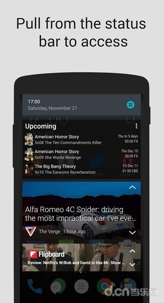 部件抽屉是一个模仿桌面小部件在下拉通知栏中存储的应用程序,可以设置下拉位置触发显示,提高效率。