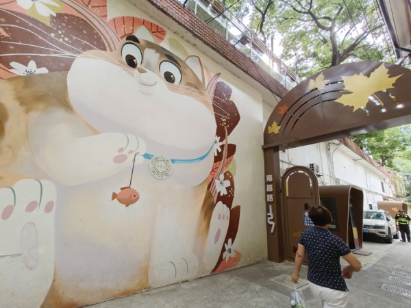 当然,最富有标杆模样的,还要数南昌路290号,垃圾箱房变画廊。街边上,四幅水墨山水画,好像四扇屏风。其实,这是垃圾厢房的外墙,绕过四扇屏风,厢房门上,也是水墨山水画;进了门,一靠近四分类投放箱,投放口就自动打开了,感应式的!居民们说,眼看着百年南昌路大变样,就是没想到,垃圾厢房也能变街景,生活环境、生活品质提升可不是一点点,看看都养眼!