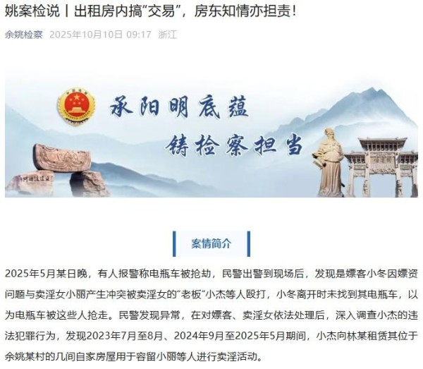 浙江余姚一男子嫖娼后发现电瓶车失踪,报警后被处理,警方破获“案中案”
