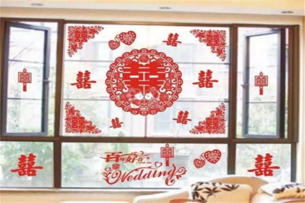 二、女方女方出嫁房间布置:墙上贴喜及装饰