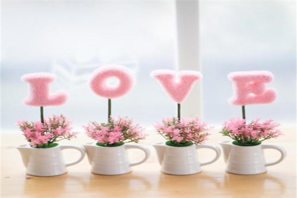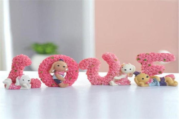 在房间的装饰中,一些承载祝福的摆件起着画龙点睛的作用,如“love”的字样以及结婚的小玩偶,东西不大,但是一眼扫到的时候就会很温馨,充满着甜蜜。