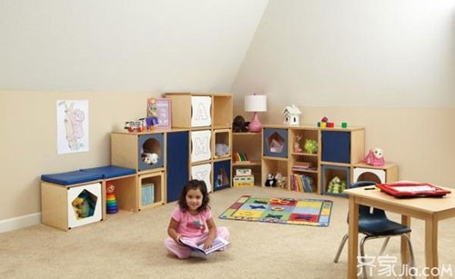 让孩子爱上阅读并不是给孩子一本书就可以的,一个好玩而有趣的读书角也是不可少的,收纳柜中有书籍有玩具,孩子可以根据自己的兴趣来挑选相应的活动。