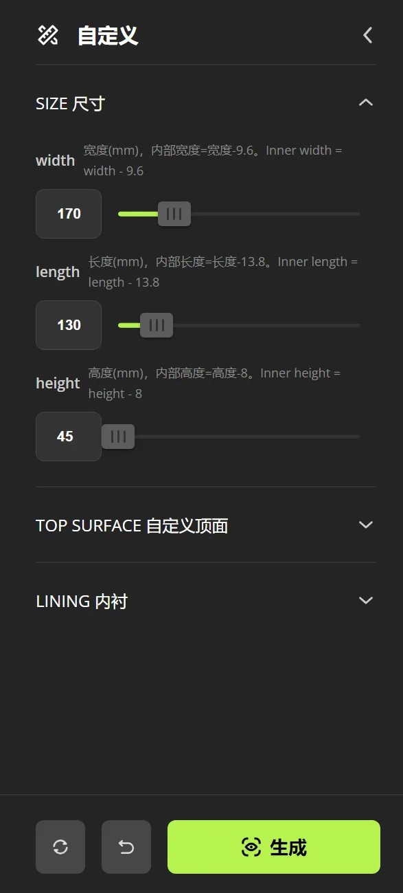 Customizable storage box parameters are as follows (customize the top surface according to your own needs, only print the storage box lid and main body)