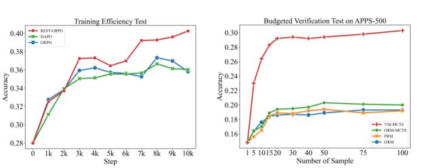 针对这些难题,清华大学计算机科学与技术系知识工程研究室(KEG)团队提出了一种统一的 LLM 强化学习(RL)新范式——ReST-RL。该方法通过将改进的 GRPO 算法与精心设计的由价值模型(VM)辅助的测试时解码方法相结合,在提升 LLM 推理能力的同时,也兼顾了效率、稳定性与可拓展性。