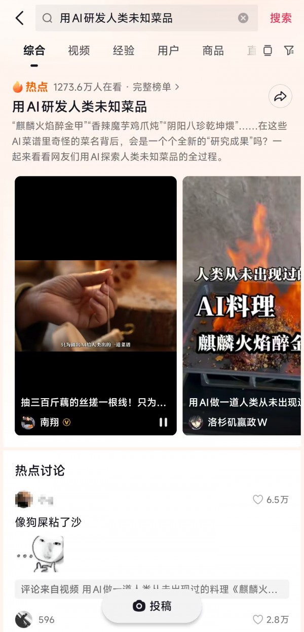 不到一周,这个话题获得1200万关注,AI料理也彻底攻陷了美食区。