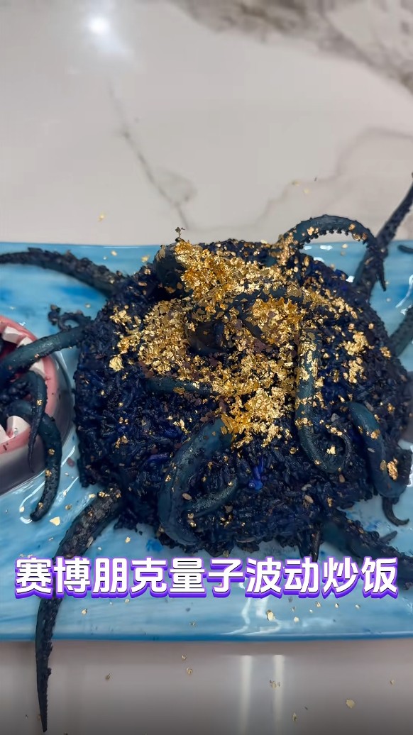 最终就得到这么一份紫黑色鱿鱼须状的“赛博朋克量子波动炒饭”,但博主实测称并不难吃,但这个猎奇程度不输博主以往素材。