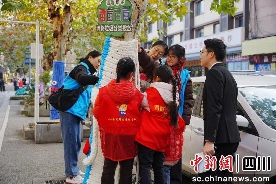 居民们亲手为梧桐树穿上彩衣。得胜街社区 供图