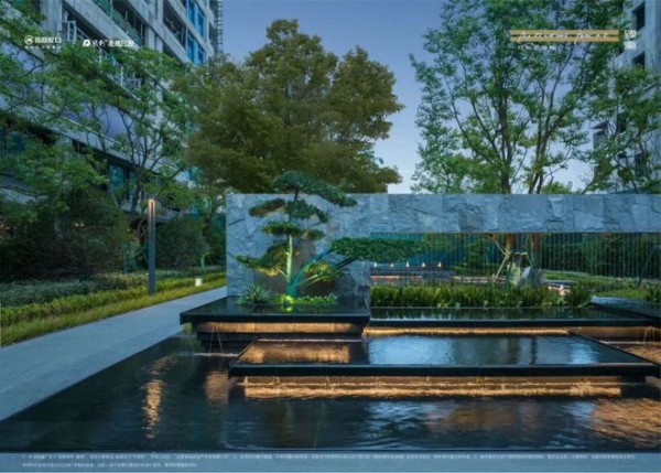 臻境的产品力,也是在持续生长的。大门设计上增加了星空照明、格栅景墙、造型松等元素,景观里面上新增了岩板、软装外摆与地面拼花铺装,还包括为架空层提升软装标准,社区多处增设辨识度极高的案名logo......