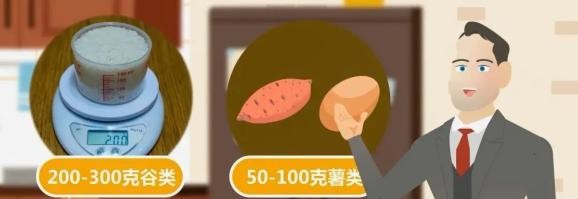 成人每天吃200-300克谷类(添加杂粮的2碗米饭),50-100克薯类,(1个鸡蛋大小的红薯)就可以啦!