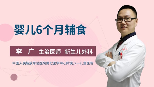 婴儿6个月辅食 从目前卫计委的要求是,孩子早期添加辅食,对于孩子的味蕾,还有一些味觉的系统发育都是有帮助的,我们一般建议4个月左右添加。有些家属比较担心,选择6个月左右添加这也是可以的。一般来说我们选择添加一些比较细腻的食物,顺序大概就是早期以添加一些汁为主,比如果汁、蔬菜汁。当6个月的时候,我们可以添加一些果泥,还有蔬菜泥,必要时可以选择我们最常用的米粉,这些对于孩子来说,消化吸收比较好,而且不需要咀嚼,不会引起一些孩子的症状。这些食物为主,当然不要过于大的食物,防止由于过大食物引起孩子比如吞咽不协调、呛咳,甚至有些孩子会出现进入气道的情况。然后就是我们要选择孩子比较合适的一些蔬果,比如苹果泥是最常用的,还有就是选择一些西瓜,当然这些东西,比如一些比较寒性的东西,我们建议就是少量添加,防止由于添加过多引起孩子的腹泻等情况。 01:48 李广 主治医师陆军总医院附属八一儿童医院 2018-10-09 103469次