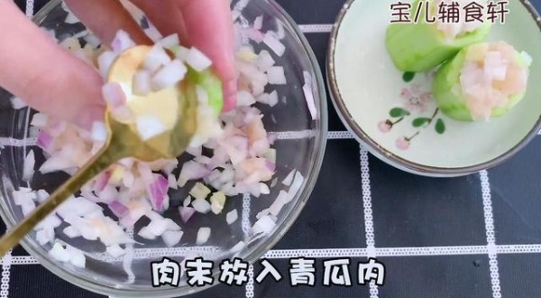 鸡肉和洋葱拌匀,放入青瓜内,大火蒸煮半小时即可。