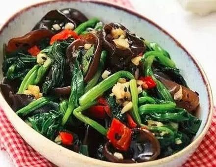 食材:木耳、菠菜、香醋、酱油、盐、大蒜、剁椒、熟芝麻、白糖。